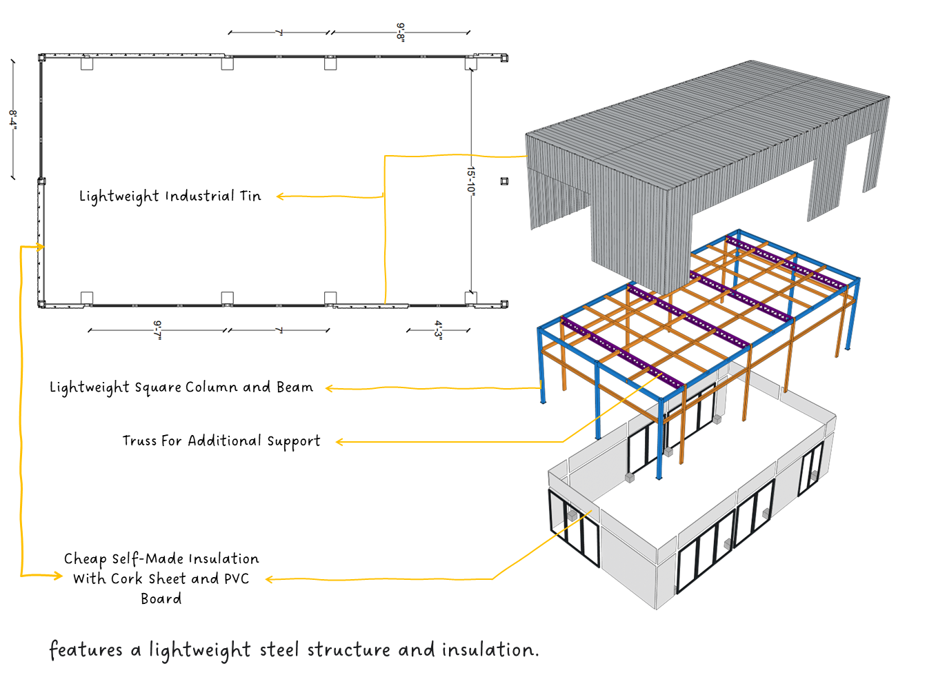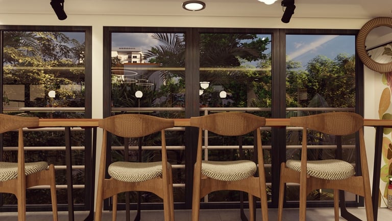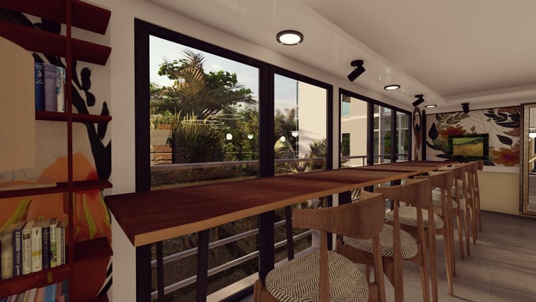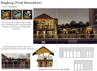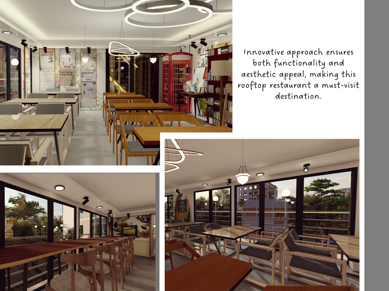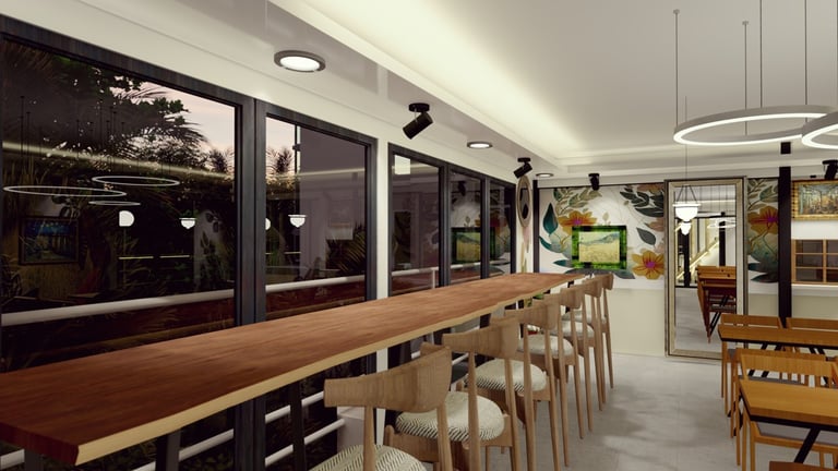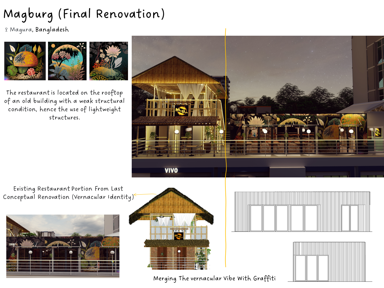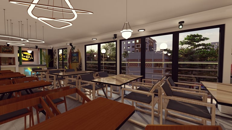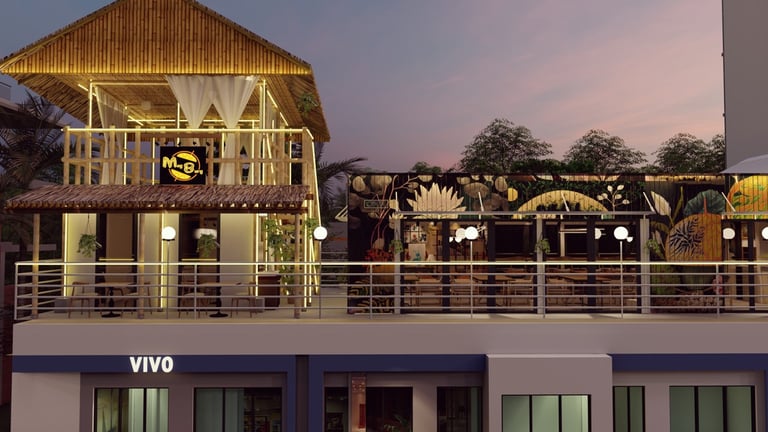 ADORA Studios has created a restaurant with a lightweight steel structure and insulation. The restaurant is on the rooftop of an old building with weak structural conditions; hence, it uses lightweight structures. The design boasts a modernistic look, complemented by stunning graffiti artwork on the wall. Combining the lightweight materials and the artistic elements creates a unique and visually striking ambiance for patrons to enjoy their dining experience. ADORA Studios’ innovative approach ensures functionality and aesthetic appeal, making this rooftop restaurant a must-visit destination.