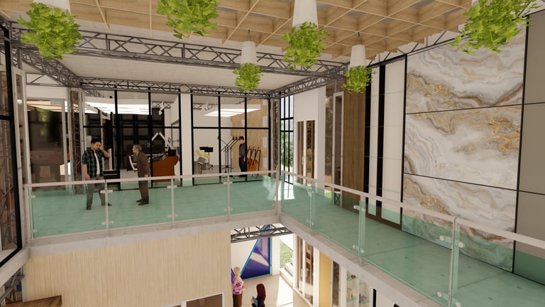 ADORA Studios, based in Bangladesh, designed the Head Hub, the headquarters for the UK-based charity organization MSFDN. The building is a creative and collaborative space, housing a music studio, conference room, classrooms, production room, dance studio, and a café. The design emphasizes open, flexible spaces that foster creativity and learning. A welcoming lounge area is a central hub, encouraging interaction among visitors and staff. The architecture blends functionality with aesthetic appeal, providing a modern, dynamic environment tailored to MSFDN’s diverse activities.