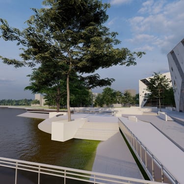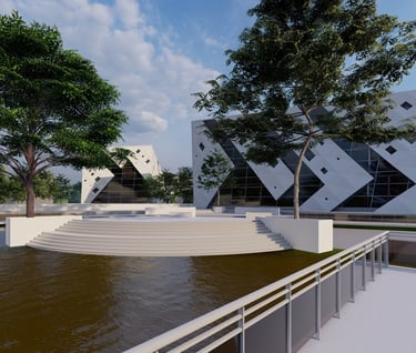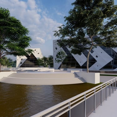 ADORA Studios’ proposal for the Civic and Cultural Center in Kushtia City embraces a futuristic and postmodern architectural concept. The design features innovative forms, advanced materials, and transparency while incorporating subtle historical references and bold geometric shapes characteristic of postmodern architecture. Key features include multifunctional spaces, cultural showcases, waterfront integration, sustainability, and interactive technology. The design prioritizes community engagement, creating an accessible and inviting hub for civic and cultural activities that reflects Kushtia's aspirations and heritage.