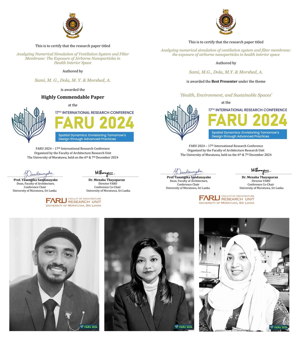 We are thrilled to announce a significant milestone in our journey — ADORA Studios has been internationally recognized at the 17th International Conference of the Faculty of Architecture Research Unit (FARU 2024), hosted by the University of Moratuwa, Sri Lanka. Our research received two prestigious awards, marking a proud moment not only for us but also for Bangladesh’s growing influence in architectural innovation.